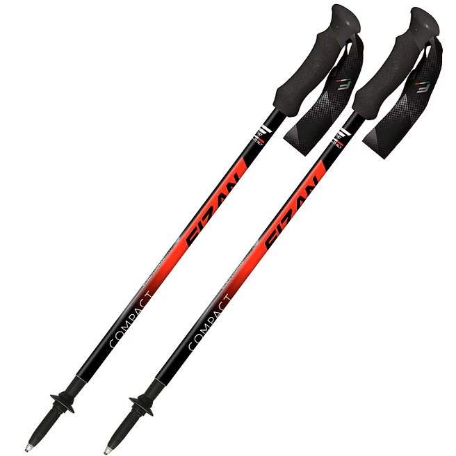 The Compact 3 is adjustable from 59 to 132 cm (22.8 to 52 inches) and weighs 158g (5.6 ounces) per pole. replaceable carbide tips for traction on dirt trails and metal-reinforced, rubber tip covers for rocky trails. Compact 3 features replaceable carbide tips for traction on dirt trails and metal-reinforced, highly textured rubber tip covers for rocky trails and slippery surfaces. Along with the included baskets, the poles can accommodate press-fit baskets from other brands.